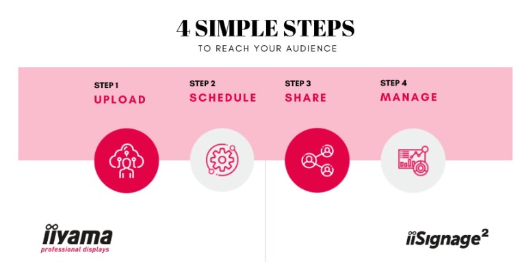 Bulut tabanlı bir içerik yönetimi sistemi olan iisignage² iiyama Digital Signage Yazılımı, iiyama LFD’nizin içeriklerini uzaktan ve güvenli bir şekilde tam kontrol sağlayarak yönetmenizi mümkün kılar. iiSignage kullanarak, iiyama ekranlarınızda kolayca kendi içeriklerinizi oluşturabilir, yayınlayabilir ve yönetebilirsiniz.