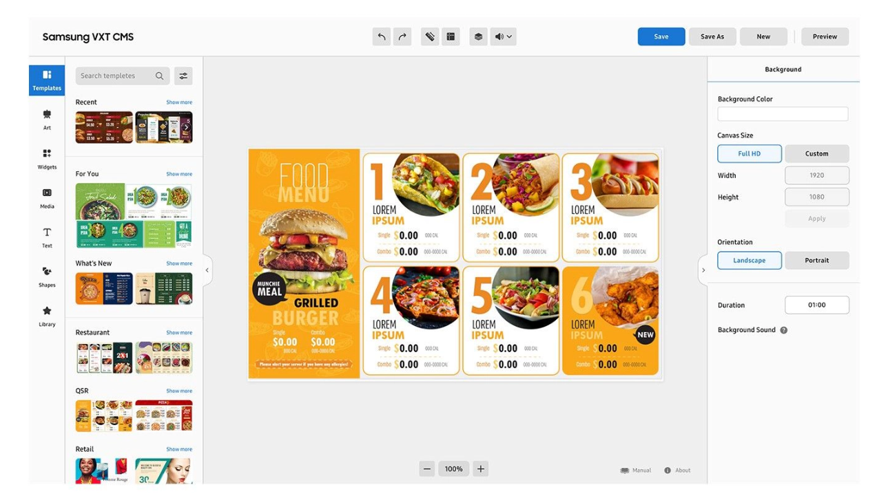 Samsung VXT, içerik yönetimi ile uzaktan cihaz yönetimini bir araya getiren bulut tabanlı bir dijital tabela yazılım çözümüdür.