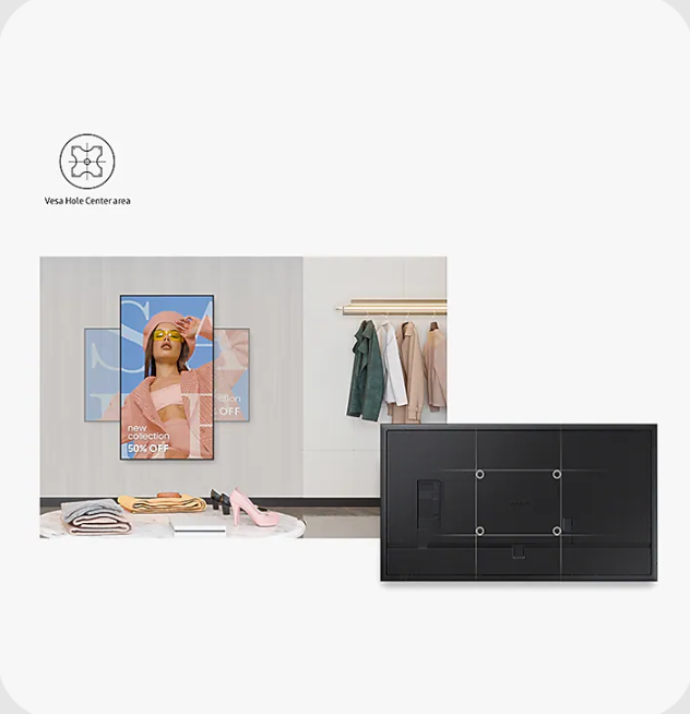 Slim Fit Duvar Askı Aparatı ile uyumludur; bu sayede ekran her ortama şık ve kolay bir şekilde monte edilebilir.