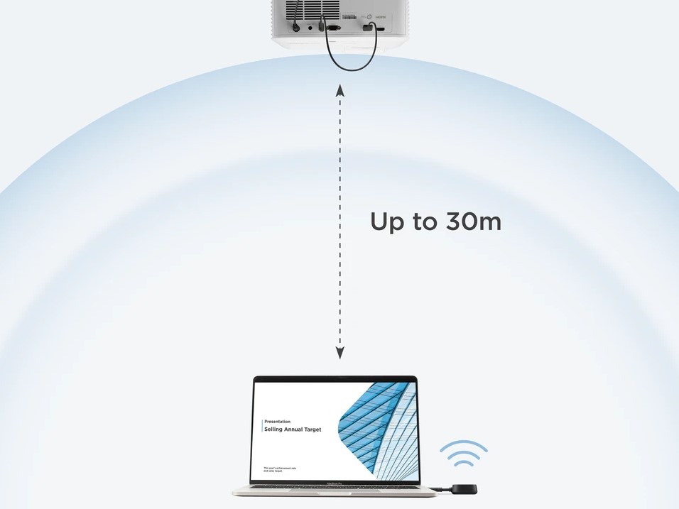 ViewShare, 30 metreye kadar uzaktan kablosuz olarak içerik yayınlayabilir ve özellikle oditoryumlar, amfiler ve daha fazlası gibi geniş alanlarda faydalı olan uzun HDMI kablolarına olan ihtiyacı ortadan kaldıran uygun maliyetli bir çözüm sunar.