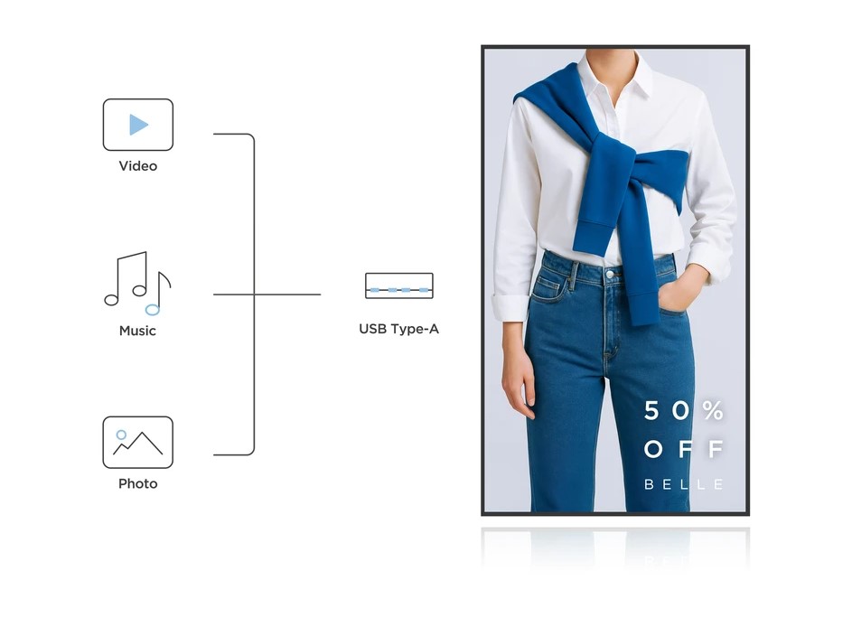 Hem yatay hem de dikey modları destekleyen bu ticari sınıf ekran, perakende ve dijital menü panolarından toplantı odası ekranlarına ve kampüs iletişimine kadar çok çeşitli kurulum ihtiyaçlarına uyum sağlar.