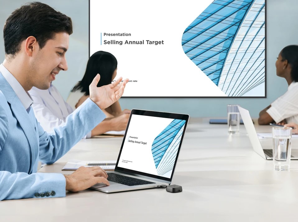 İsteğe bağlı ViewShare WPD-900 Kablosuz Ekran Yayınlama Kiti* ile anında Full HD kalitesinde sunum yapın. USB-C veya yerel protokolleri kullanarak sunum yapanlar, Wi-Fi veya yazılım kurulumu gerektirmeden dizüstü bilgisayarlardan veya mobil cihazlardan yayın yapabilir. Güvenli noktadan noktaya bağlantı ve kullanıcılar arasında tek tıklamayla geçiş, iş birliğini sorunsuz ve düzenli tutar. *WPD-900 Kablosuz Yayın Kiti ayrı satılır.