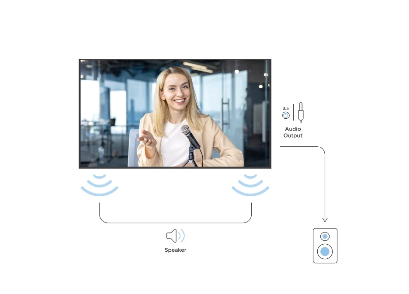 İki adet entegre 10W hoparlör, küçük alanlarda (örneğin, toplantı odaları) tek başına kullanım için net ses sağlar. Daha büyük ortamlar veya daha gelişmiş AV kurulumları için 3,5 mm ses çıkışı, harici ses sistemleriyle kusursuz entegrasyon sağlayarak onu sınıflar, lobiler ve halka açık alanlar için ideal hale getirir.